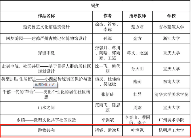 城市设计组铜奖获奖名单