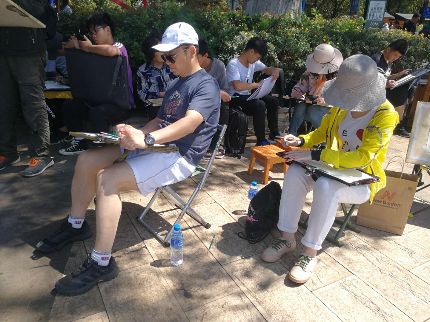 建筑学院18级园林专业《美术2》的素描风景写生课当中,和同学们一道交流并一同现场写生。