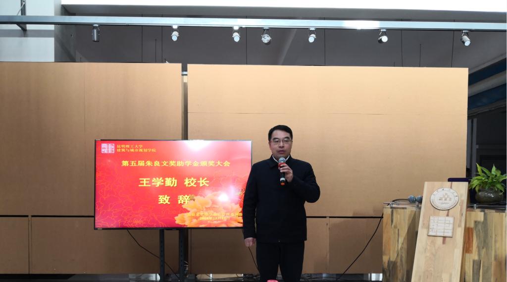 颁奖仪式上,王学勤校长代表学校对朱良文教授捐资助学的善行义举和高尚情怀表示感谢,对获资助同学们的勤奋坚韧和优异表现给予高度表扬,同时也勉励同学们戒骄戒躁,在学习上更加用心追求卓越、自强不息、不断进取,在生活上常怀感恩之心,常行谢恩之举。