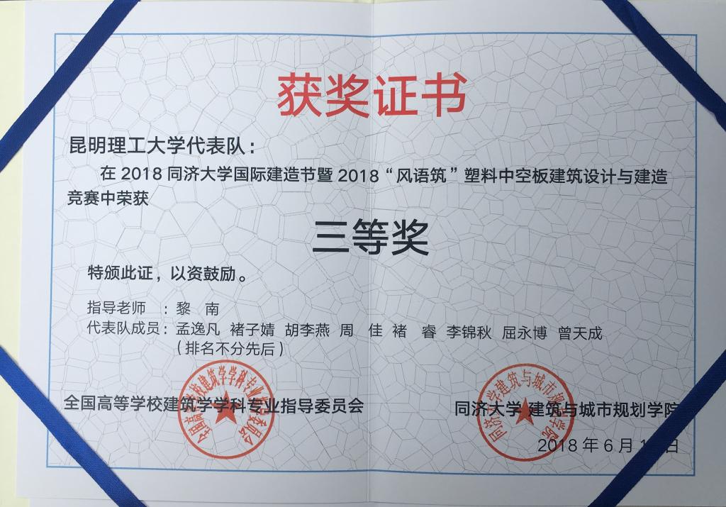 派出的参赛队,由黎南老师带队,一年级建筑类专业孟逸凡、褚子靖、周佳、胡李燕、李锦秋、曾天成、屈永博、褚睿8名同学参加,参赛作品“独上西楼”获得了三等奖。