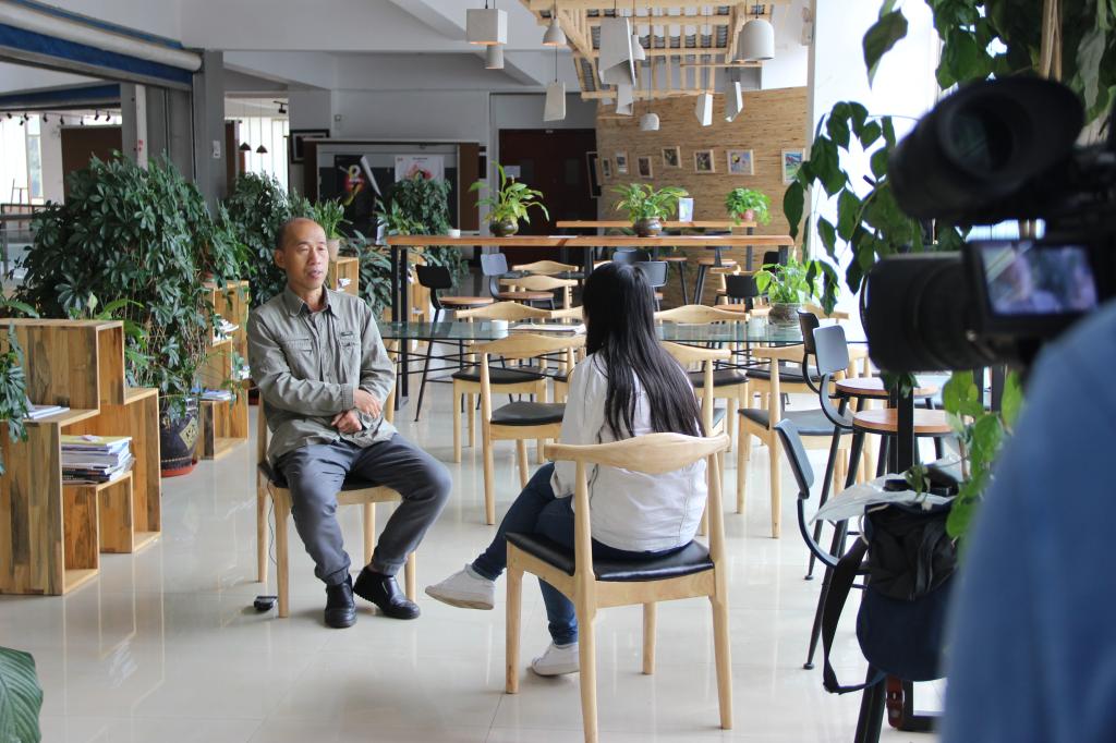 9月22日上午,云南电视台记者在建筑楼中庭“建筑客厅”对木瓜视频