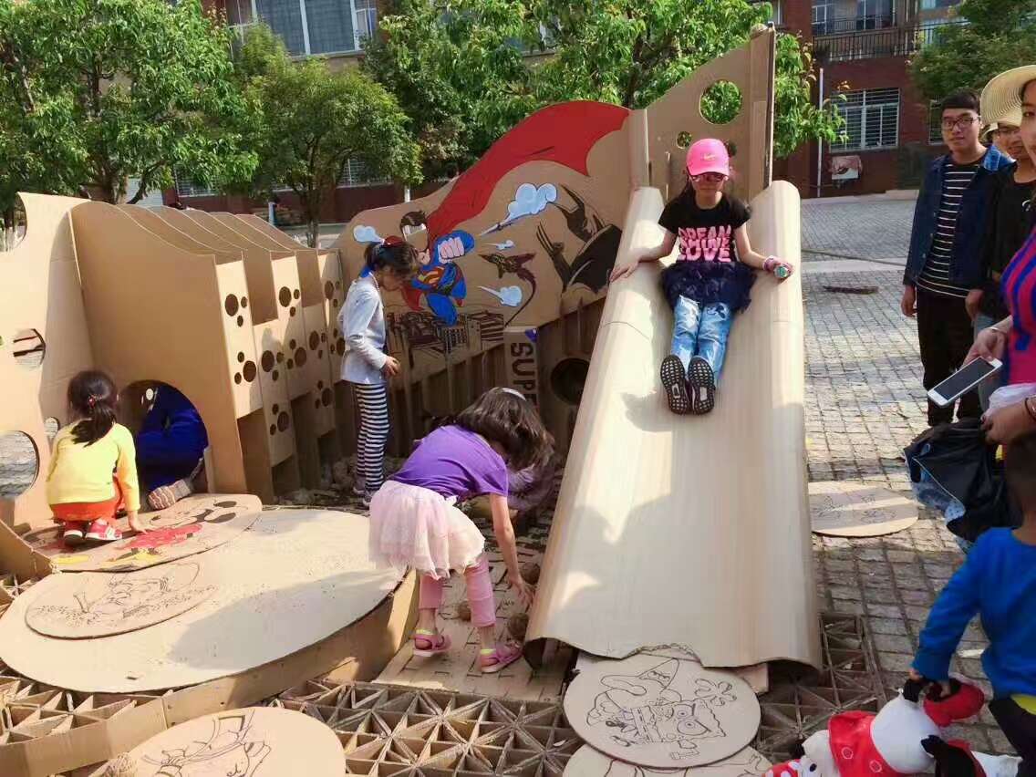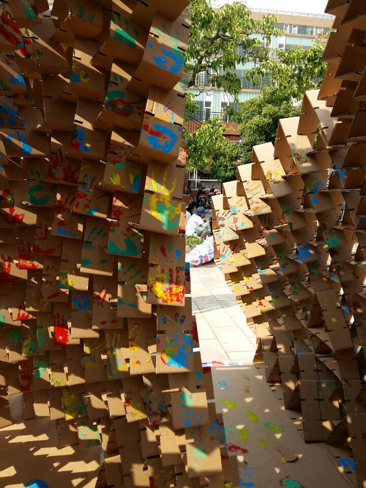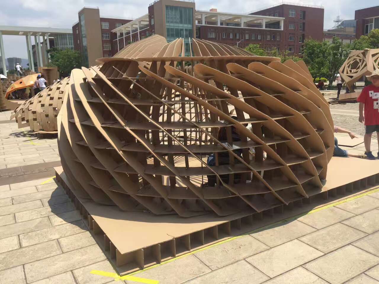 13日下午各队的参赛方案陆续出炉,也吸引了很多前来玩耍的孩子。下午4点经评委团对各纸板建筑在结构、空间和形态等方面的综合考量,评出了本届建造节的各个奖项。获得一等奖的是昆明理工大学津桥学院代表队,获得二等奖的是昆明理工大学木瓜视频