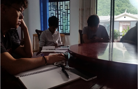 昆工队是一支严肃认真、活泼可爱,行动力爆棚的队伍。7月31日在廖静和黎南老师的带领下师生11人奔赴楼纳,驻场指导的两位老师带领大二,大三同学深入勘探建造场地,开始了有别于书本课堂的精彩乡村建造之旅。在对田野探访的过程中,师生向工匠虚心地请教,与构造材料亲密接触,方案在一次次的讨论中不断优化,设计更加贴近自然。在方案的研讨和建造试验中,队员们变得更加的默契和亲密。