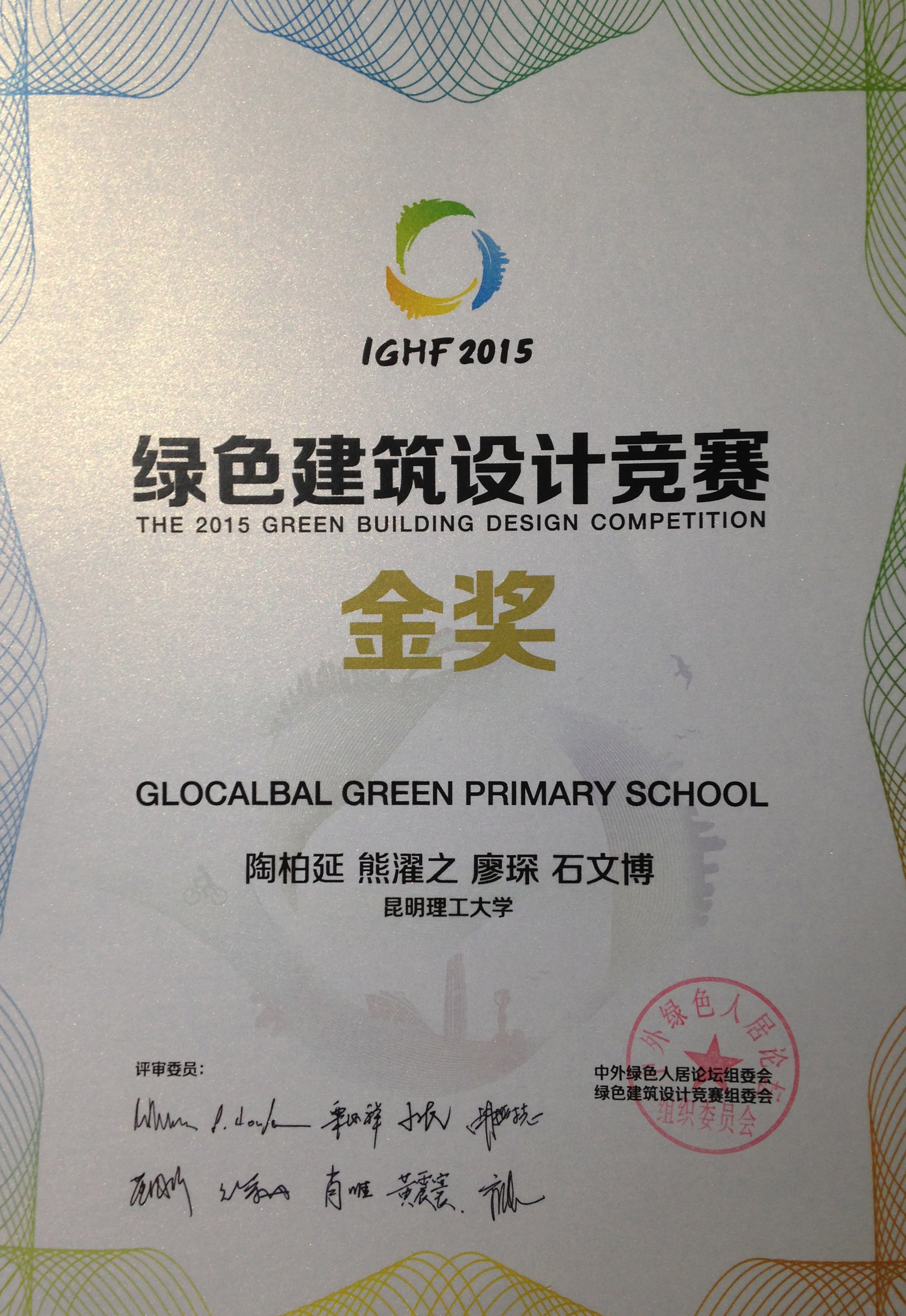 王冬教授和杨大禹教授等教师指导的2014级硕士研究生陶柏延、熊濯之、廖琛、石文博团队的设计作品“GLOCALBAL GREEN PRIMARY SCHOOL”(地域性的绿色中学)在竞赛中一路过关斩将,最终获得金奖。二个银奖奖项由浙江大学和重庆大学的团队获得、三个铜奖奖项由重庆大学、哈尔滨工程大学和东南大学的团队摘走。