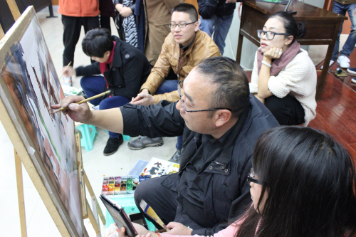 教学实习基地”进行了签约挂牌仪式。最后格鲁宁教授为首届风景园林文化艺术嘉年华致辞,他表示了对建筑院举行此次艺术活动的祝贺和期待。开幕式的最后唐文老师、李琪老师云手绘的老师还在现场为大家展示了水彩和钢笔表现技法。