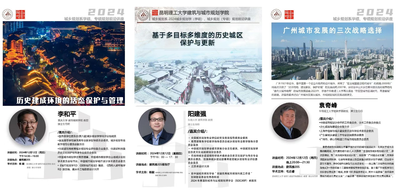 党委书记李和平教授,东南大学建筑学院阳建强教授,华南理工大学建筑学院袁奇峰教授到学院开展学术讲座。讲座在建筑205报告厅举行,学院院长杨毅教授、副院长毛志睿教授分别主持,学院200余人次师生聆听了讲座。