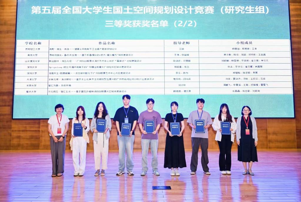 共计五支参赛队伍获奖,涵盖本科与研究生阶段的两个赛道、四类奖项。其中,本科毕业设计、研究生国土空间规划设计、研究生毕业论文项目均为首次获奖,实现历史性突破。