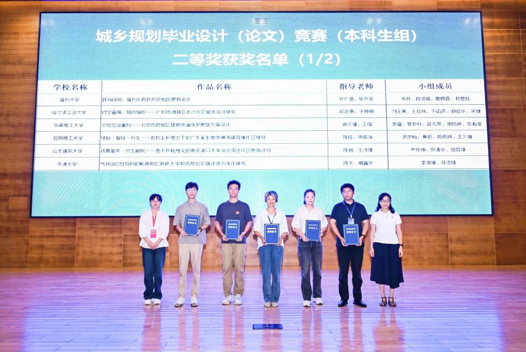 由获奖师生毛志睿、陈桔、王颖、杨智涵(研究生)共4人出席大赛闭幕式。毛志睿副院长代表学院参加国土空间规划教学与实践研讨会平行论坛会议,聚焦城乡规划专业本科生人才培养学制改革议题展开研讨。本次活动形成了“以赛促教、以赛促育、以赛促建”的良性循环,为推动国土空间相关领域人才培养与学科建设,促进高校规划教学适应行业转型需求,发挥了重要的促进与带动作用。木瓜视频