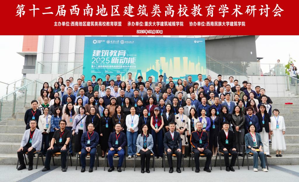 2025年10月17日至19日,由西南地区建筑类高校联盟主办、重庆大学建筑城规学院承办、西南民族大学建筑学院协办的“第十二届西南地区建筑类高校教育学术研讨会”在四川成都隆重召开。本次会议以“需求锚定、AI赋能与成果转化”为核心议题,汇聚了来自40余所联盟高校的专家学者、教师代表及行业领军人物,共同探讨数字化、人工智能与新质生产力背景下建筑教育的挑战与机遇。