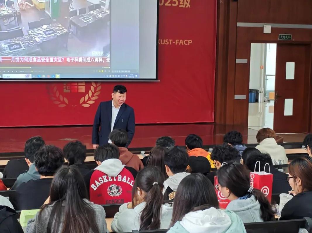 本次培训特别邀请云南久安职业技能培训学校的朱侨勋教官主讲。朱教官以三类典型校园火灾案例为切入点,生动剖析事故成因与深刻教训:宿舍违规使用 “热得快” 忘断电引燃床铺、实验室加热酒精操作不当引发火情、图书馆电路老化短路烧毁图书。这些案例让师生直观感受到火灾隐患的危害性,深刻认识到侥幸心理、管理疏漏和应急能力不足是导致事故扩大的关键因素。
