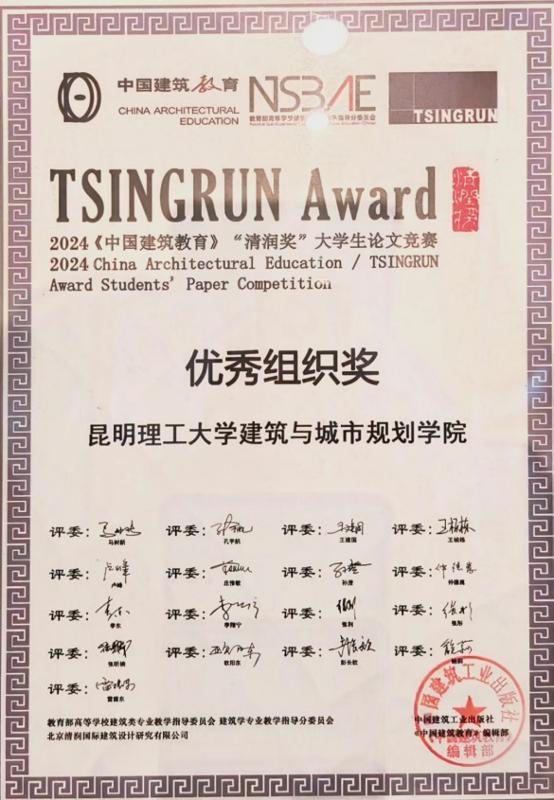 本次会议中,建筑学院荣获优秀组织奖。 "清润杯"论文竞赛中表现卓越,荣获三项优秀奖。