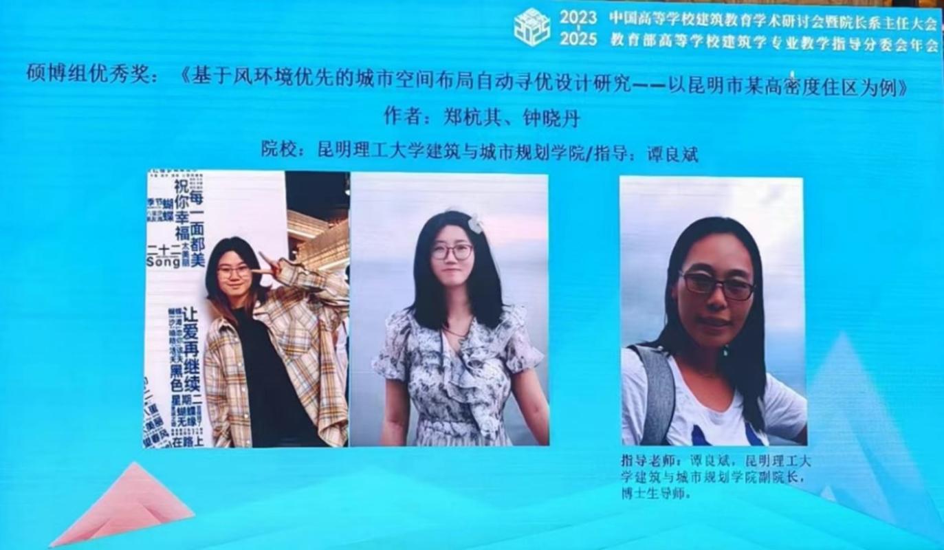 论文《基于风环境优先的城市空间布局自动寻优设计研究——以昆明市某高密度住区为例》,(作者:郑杭其、钟晓丹;指导老师:谭良斌教授),荣获2024 年“清润杯”论文竞赛优秀奖。
