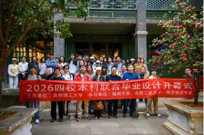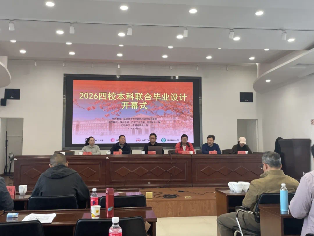 2026年(第七届)本科四校联合毕业设计开营及现场调研活动于3月5日在云南省玉溪市顺利举行。本届毕设活动由昆明理工大学主办,玉溪建筑设计院协办,来自昆明理工大学、福州大学、南京林业大学及合肥工业大学的建筑学、城乡规划及风景园林本科毕业生及指导教师共计60余人参加。本次活动旨在通过校际合作,围绕“历史街区与城市更新”课题,提升学生的实践能力与创新思维,促进四所高校在毕业设计教学领域的交流与协作。活动主要包括毕业设计开幕式和现场调研两部分,为后续毕业设计的开展奠定了坚实基础。