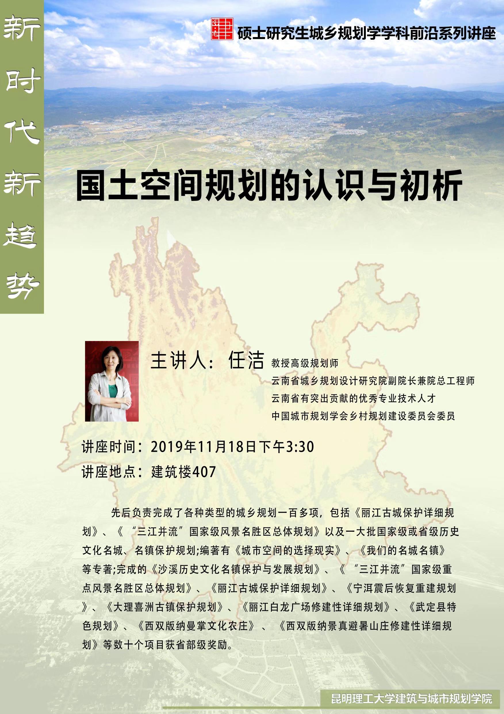 讲座:国土空间规划的认识与初析(主讲人:任洁,教授高级规划师)