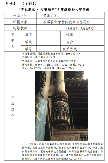 (2)古建筑摄影大赛参赛报名表;