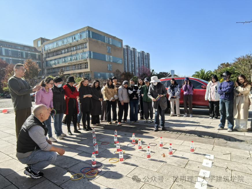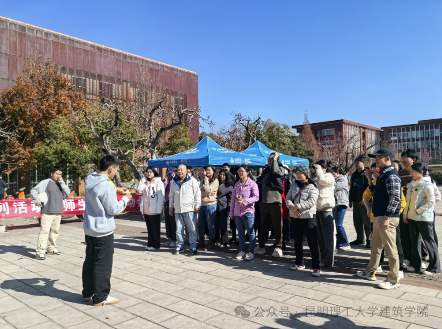 学院外的广场上,“趣味运动会”火热展开,6个队伍分别代表了学院70余名师生,这是一次集技巧与协作于一体的竞技。在接力比赛中,选手们手持球拍,小心翼翼的传递着乒乓球;套圈环节中,选手们精心酝酿,精准投掷;螃蟹接力赛中,选手们模仿螃蟹背对背夹气球快速而准确的横移。这些项目不仅考验了选手的灵活性和协调性,更在欢声笑语中展现了团队间的默契与合作精神。