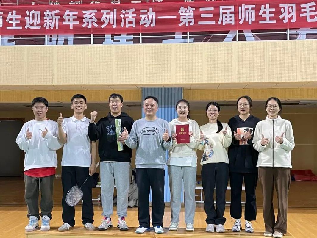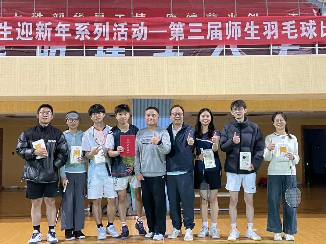 傍晚,师生羽毛球赛隆重开始,学院的12支队伍共80余名师生选手共同展开竞技,团体双打比赛进行女双、男双、混双三个项目。比赛采取小组循环制进行,通过初赛按照积分高低产生八支队伍进行决赛。比赛现场,师生们挥动羽毛球拍,老师们以稳健的球技和从容的心态获得赞誉,学生们则以满腔的热情和青春的活力闪耀全场。选手们身手矫健,每一次挥拍都凝聚着汗水与智慧,场边观众的加油声、欢笑声交织成一片。决赛阶段,8支队伍展现出了最佳竞技状态,观众席上不时响起加油声和喝彩声,赛场上充满着浓厚的竞技氛围与团队精神,经过激烈角逐,最终决出了比赛的冠亚季军。羽毛球赛的个人赛中,40余名师生参加比赛。单打比赛过程中高潮迭起,选手们一个个精彩的防守和绝杀都引起观众的阵阵喝彩,经过4轮的过关斩将,最终毕灏严同学获得冠军,杨智同学获得亚军、程昊同学获得季军。
